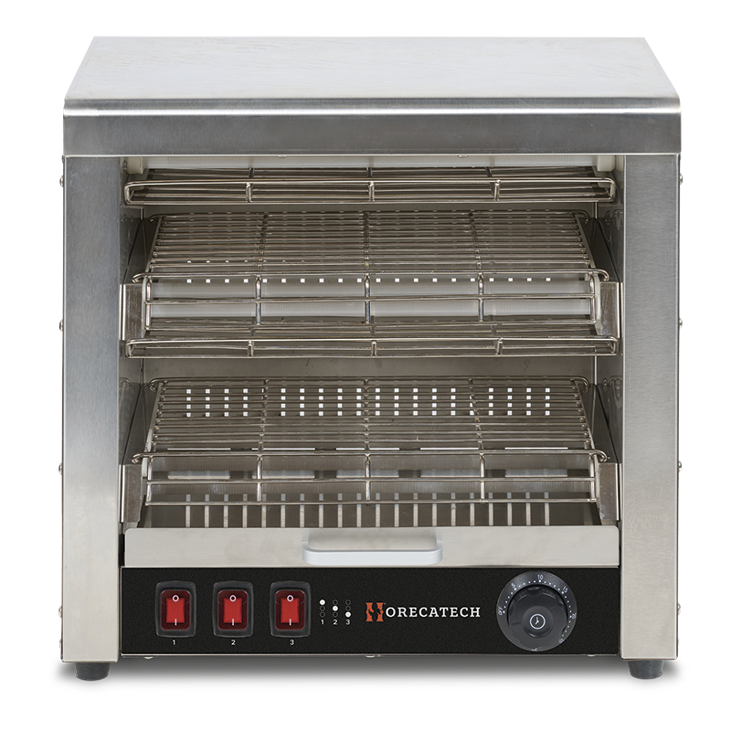 - 2 griglie estraibili in acciaio AISI 304per tostare pane, buns etc.
